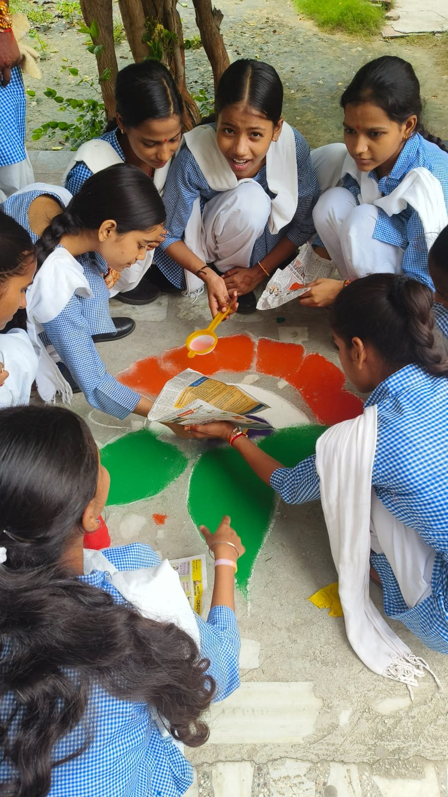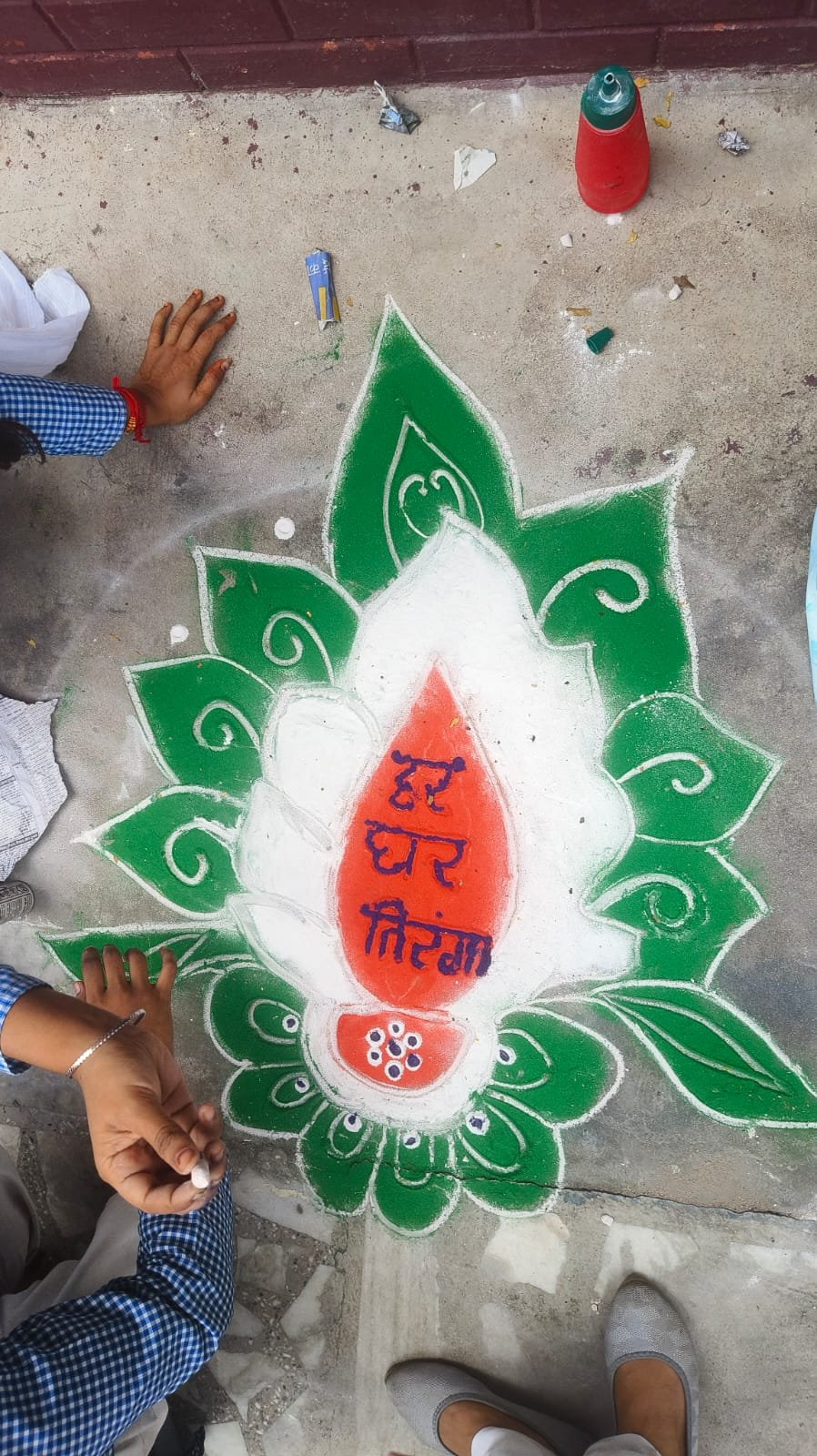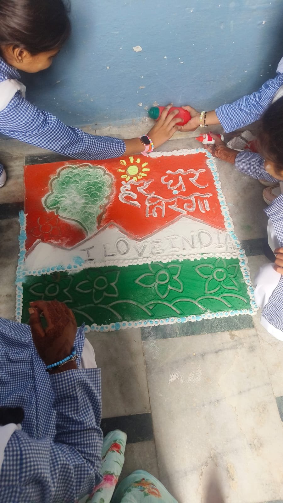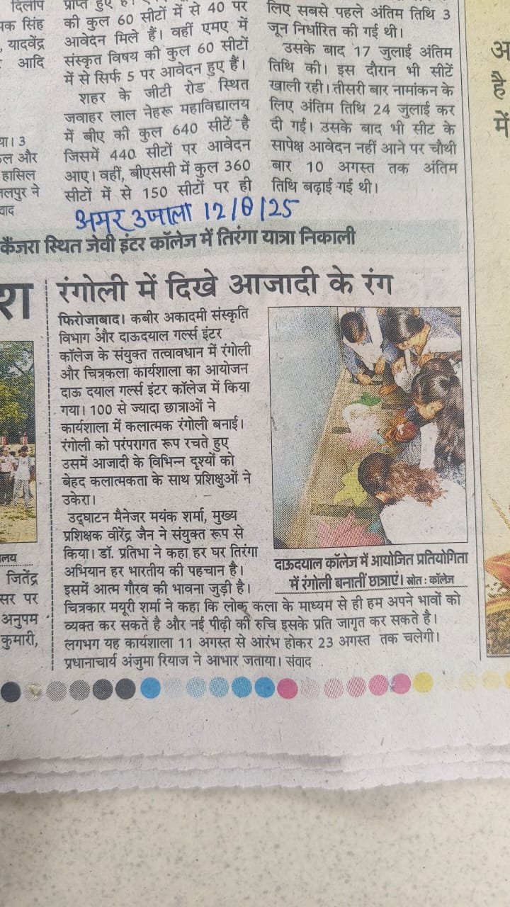 कबीर अकादमी संस्कृति विभाग उत्तर प्रदेश और दाऊ दयाल गर्ल्स इंटर कॉलेज फिरोजाबाद के संयुक्त तत्वाधान में "हर घर तिरंगा" अभियान के अंतर्गत रंगोली और चित्रकला कार्यशाला फिरोजाबाद दूसरा दिन