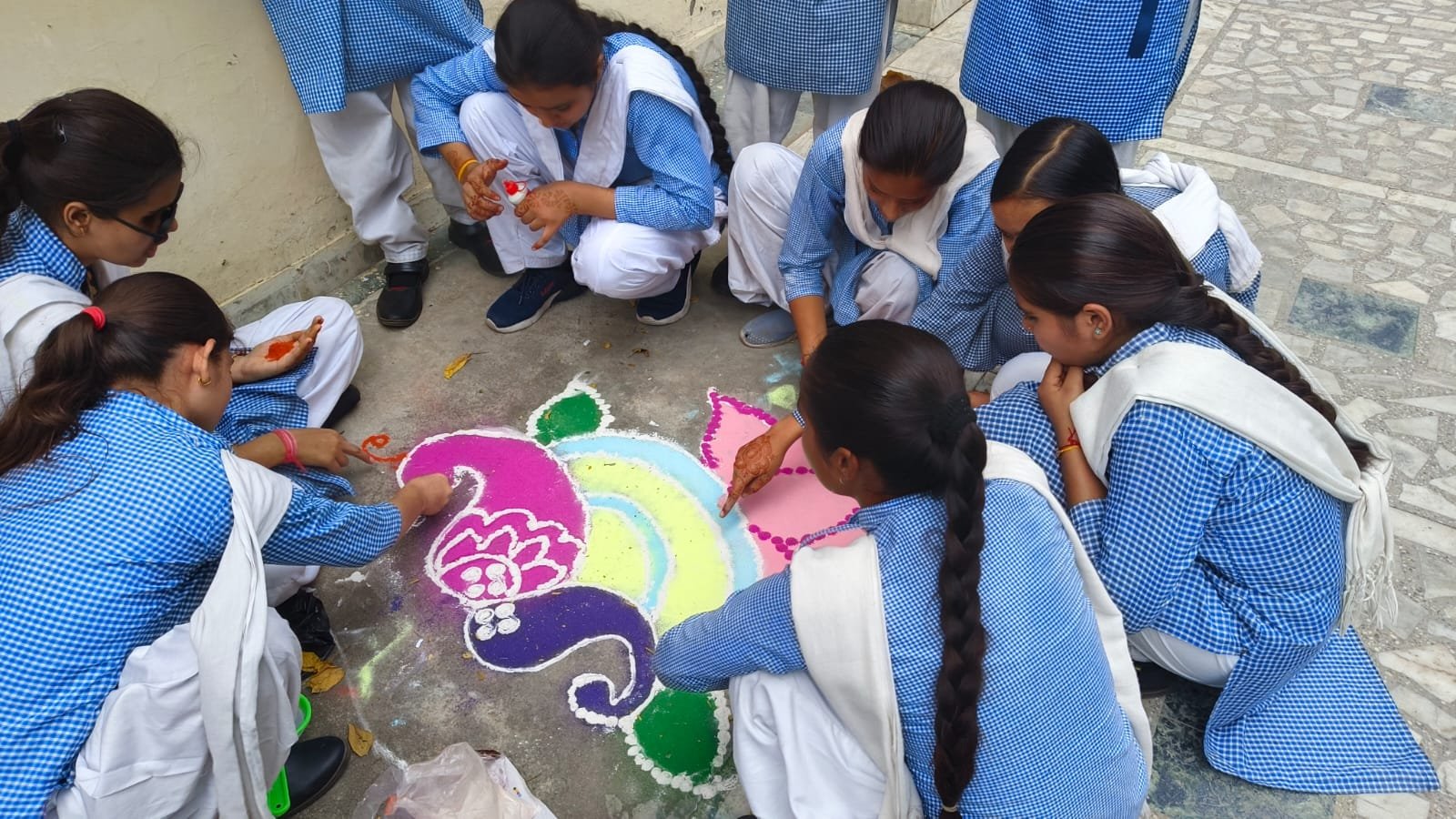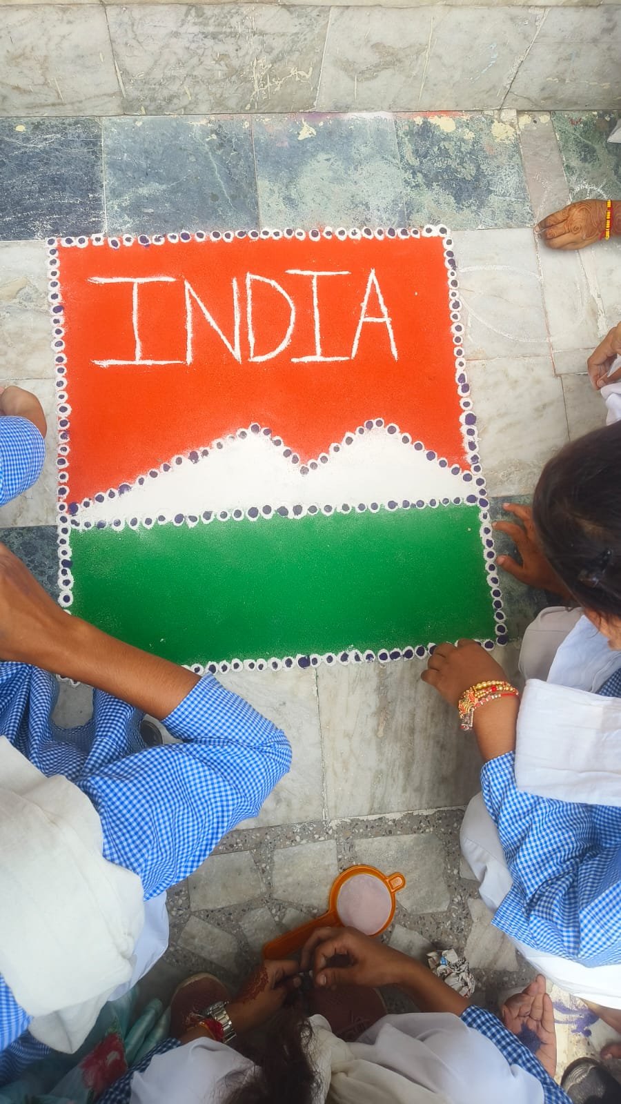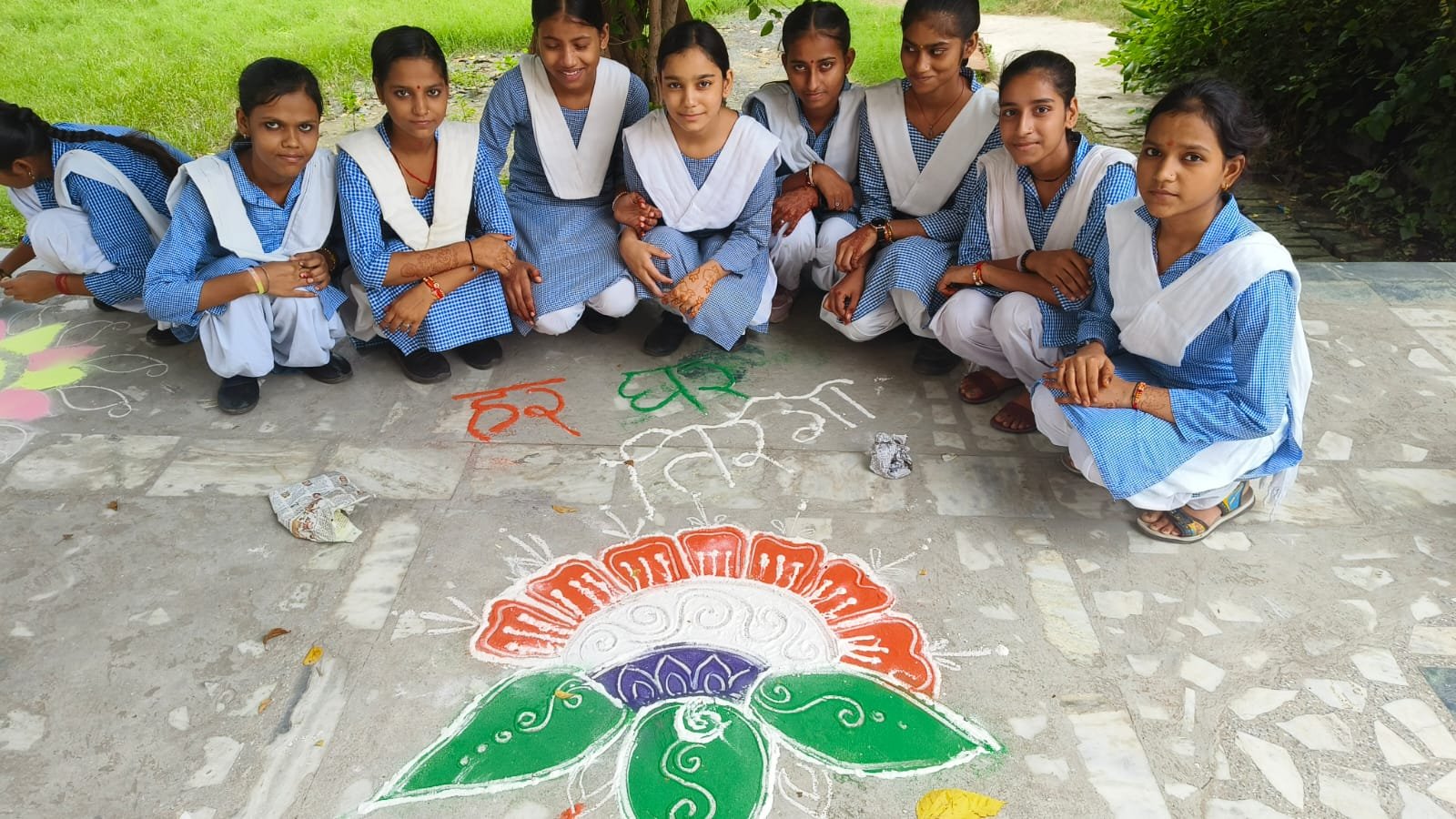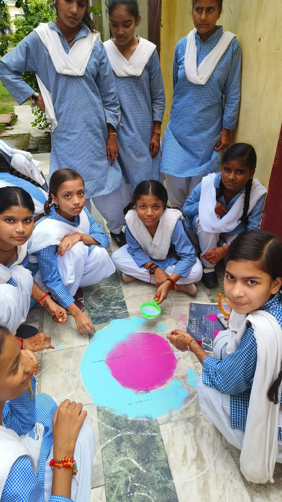कबीर अकादमी संस्कृति विभाग उत्तर प्रदेश और दाऊ दयाल गर्ल्स इंटर कॉलेज फिरोजाबाद के संयुक्त तत्वाधान में "हर घर तिरंगा" अभियान के अंतर्गत रंगोली और चित्रकला कार्यशाला फिरोजाबाद दूसरा दिन