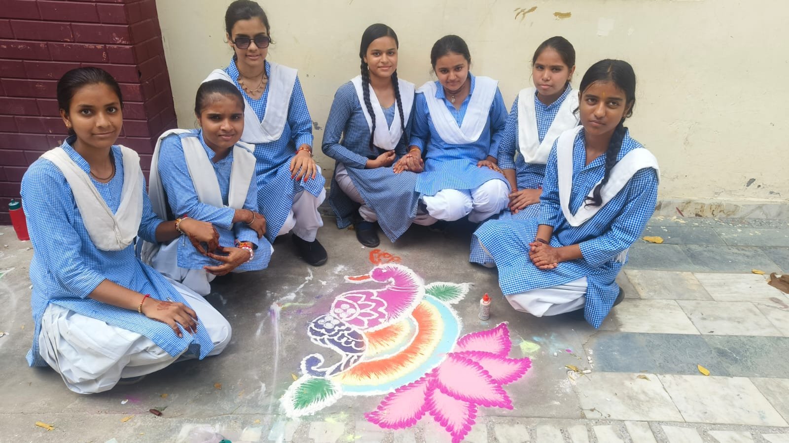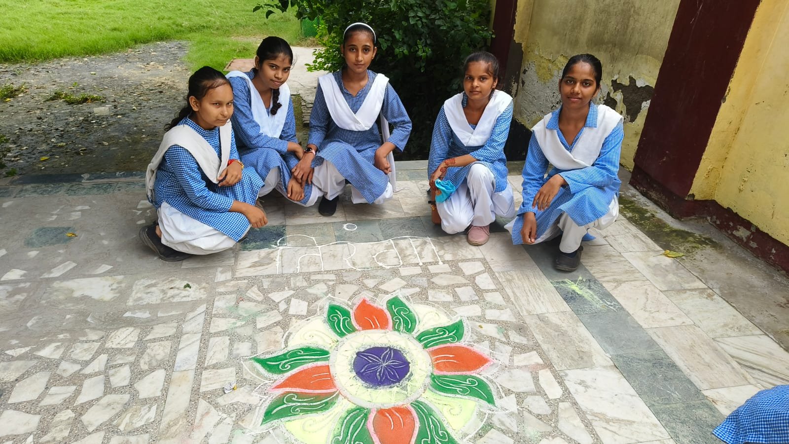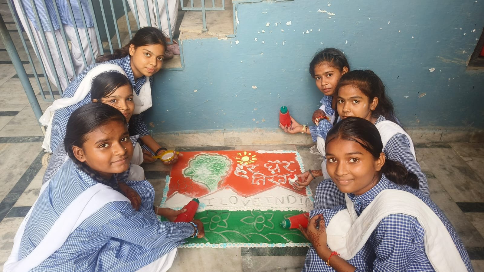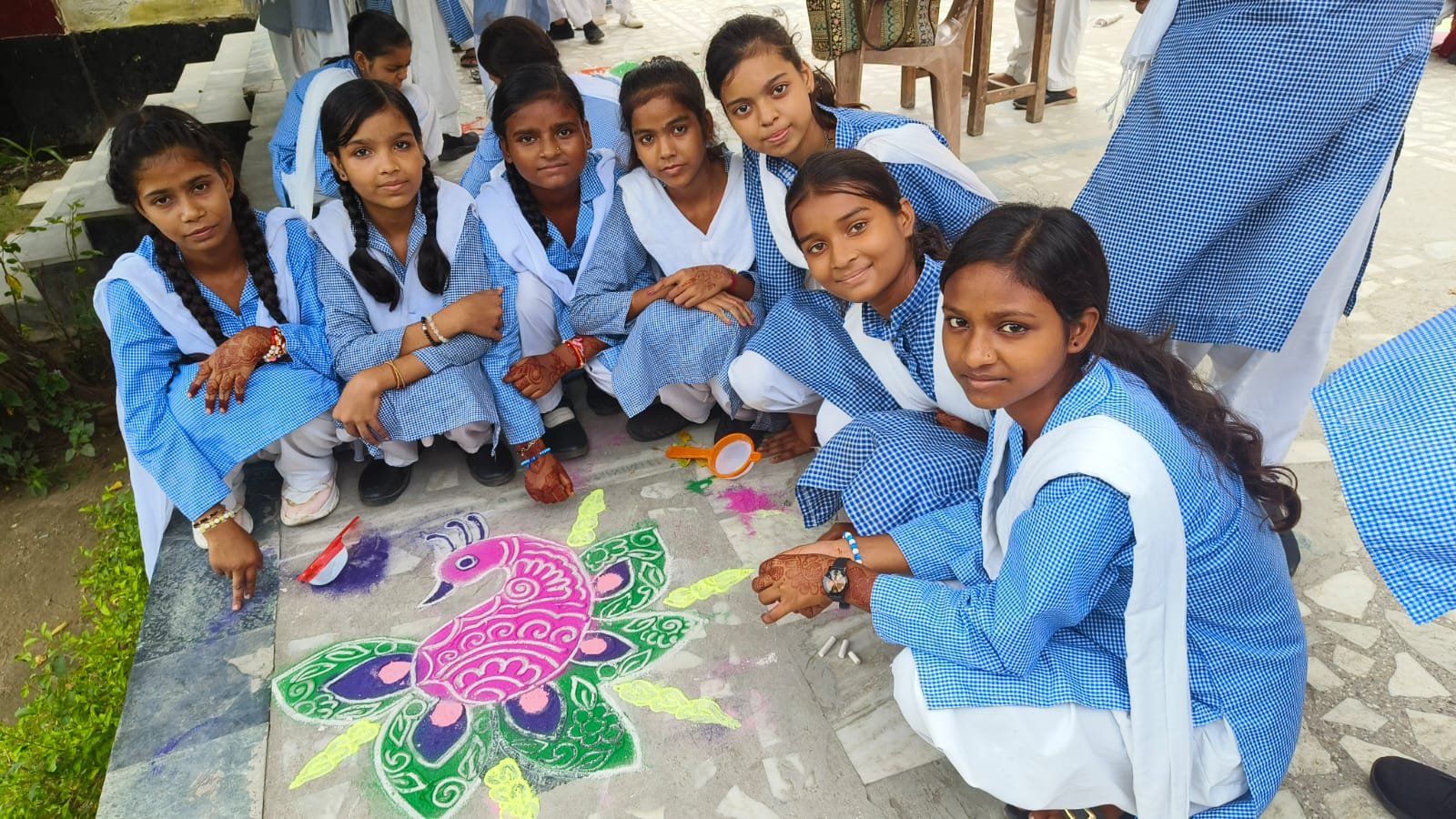 कबीर अकादमी संस्कृति विभाग उत्तर प्रदेश और दाऊ दयाल गर्ल्स इंटर कॉलेज फिरोजाबाद के संयुक्त तत्वाधान में "हर घर तिरंगा" अभियान के अंतर्गत रंगोली और चित्रकला कार्यशाला फिरोजाबाद दूसरा दिन